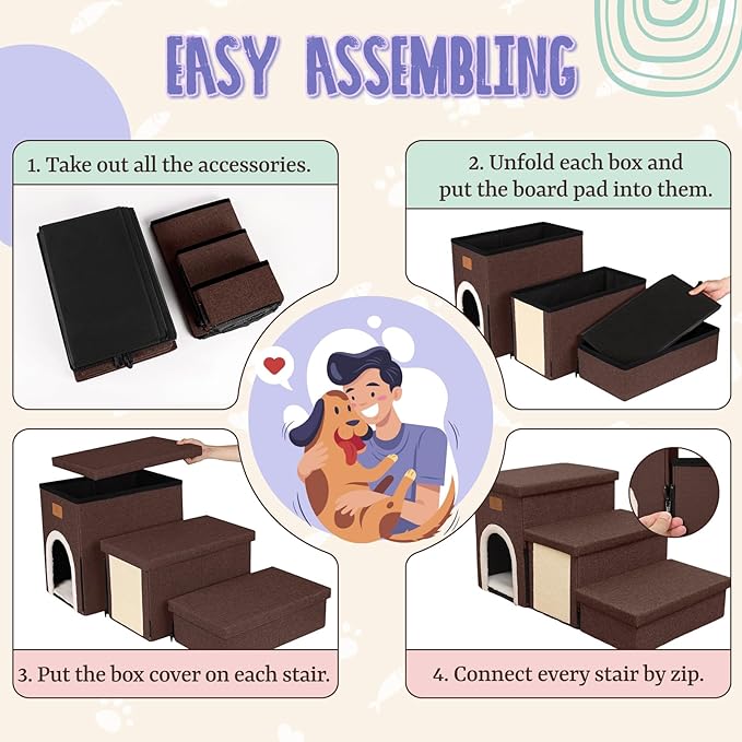 - EASY ASSEMBLY: The dog stairs for high beds are simple to assemble with detailed instructions provided. These pet stairs for small dogs can also be easily folded flat to store, making it a convenient addition to your home