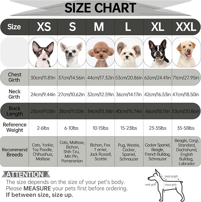 - 【Size】: BRKURLEG sweaters for dogs avalible in 6 Sizes, this cute dog sweater is suitable for small, medium, and large dogs. Size XS/S for small dog or cats, Size M/L/XL for medium dog, Size 2XL for large dog, Different breeds of dogs have unique body shapes, Please measure your furry baby patiently before purchasing. It is recommended to buy a larger size for a growing dog.