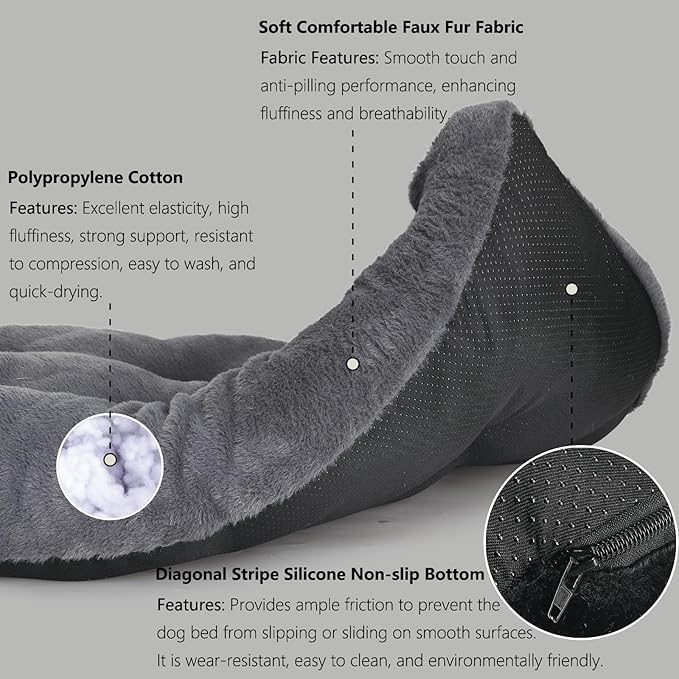 - Crafted from luxurious and soft faux fur material, this large dog bed washable maintains its shape and color even after prolonged use. It can be easily cleaned by machine or hand washing, ensuring a worry-free experience for you and your pet.