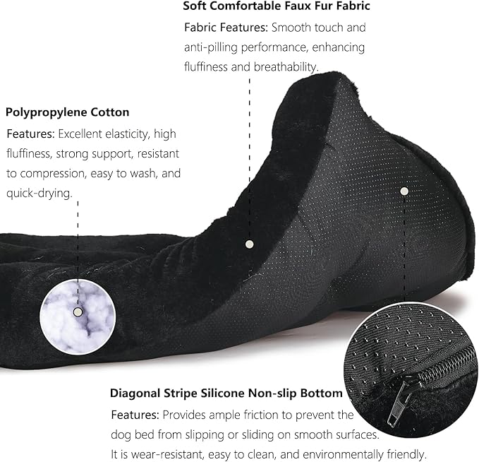 - Crafted with ultra-soft and breathable faux fur fabric, filled with 4 inches of high-resilience PP fiber, this luxurious kennel bed 48 inch offers a skin-friendly comfort for your furry companion, while the thick filling provides relief from joint pain.