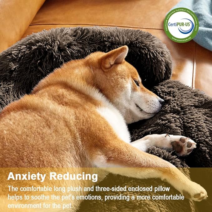 - Cozy and Calming: The soft and plush material of shaggy fur dog beds provides a sense of security, comfortable and cozy sleeping surface for pets. And our dog bed has a 80% foam+20% memory foam fil filling that provides excellent support and comfort for your pet. The raised edges of the bed create a cozy environment that helps to reduce stress and anxiety in your pet