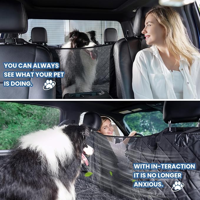 - Increase Pet-Owner Interaction and Reduce Pet Anxiety: We added a breathable mesh window to the dog backseat protector so your pet can see everything from the backseat and reduce anxiety. It also improves air circulation in the backseat, creating a comfortable environment. Your dog will love traveling in the car without feeling lonely or stressed.