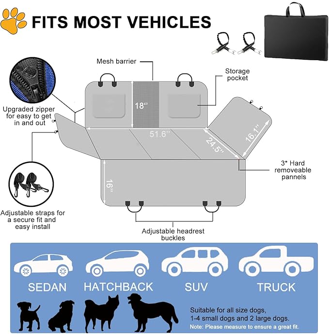 - 【Easy to Use & Waterproof】The back seat pet cover for dogs is very easy to install with the clip, and fold up back into the storage bag when not needed. Your dog can easily get in and out with the smooth zippers. For deeper cleaning, simply remove the panels and machine wash.