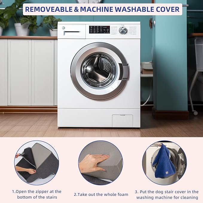 - EASY TO CLEAN - The dog step has a removable washable cover made of bonded fleece that can be hand washed or machine washed, so you don't require spending a lot of time cleaning it. It's very convenient.