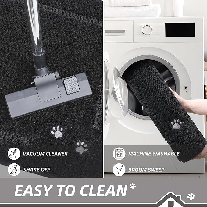 - Easy to Clean:When your entrance mat get dirty, you can shake it off. You also can sweep the front door rugs with a broom or vacuum regularly.And you can rinse the dog door rug with a garden hose. For deeper clean, the doormat is machine washable in cold water, using mild detergent.Our washable hallway rug will not fade.Do not use bleach or fabric softener