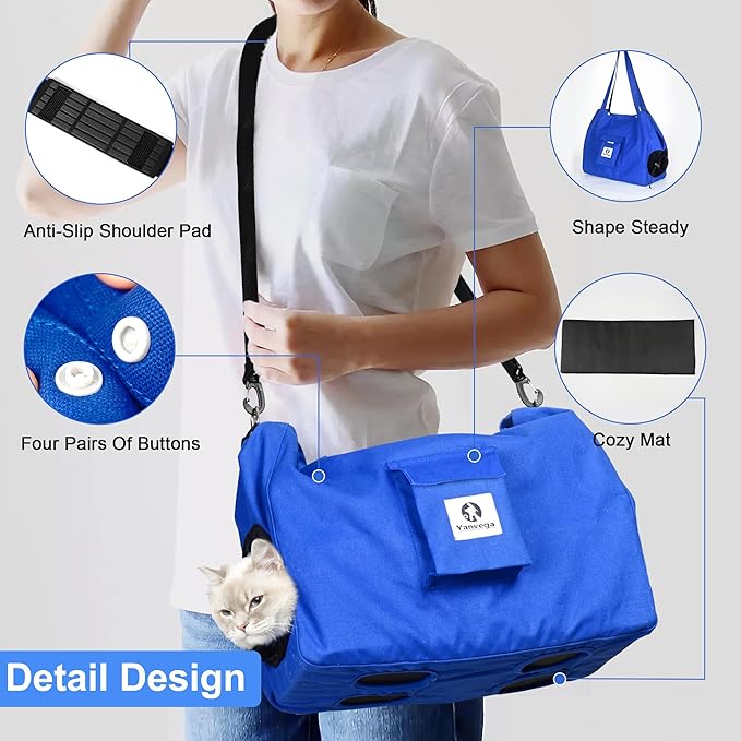 - Adjustable Crossbody Strap: The cat carrying bag is an upgraded design, with an adjustable length crossbody strap. The crossbody strap of the cat sling carrier is equipped with a shoulder pad to disperse pressure