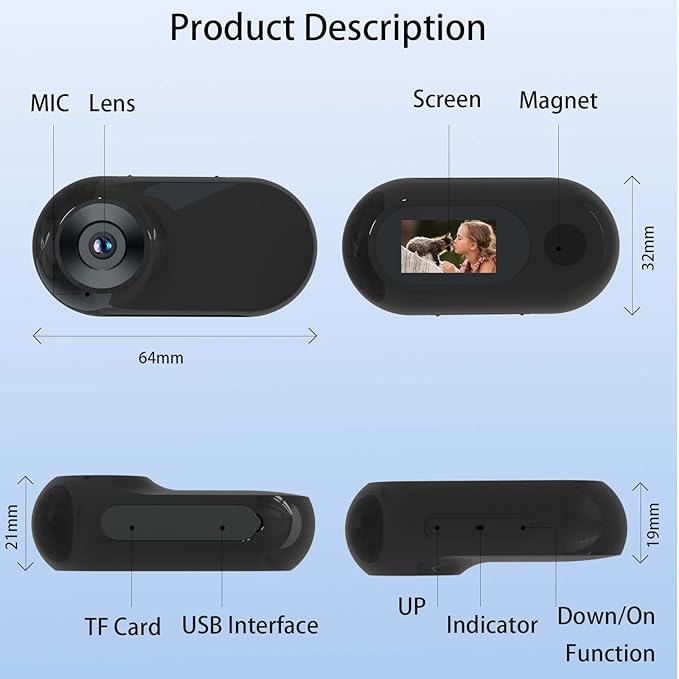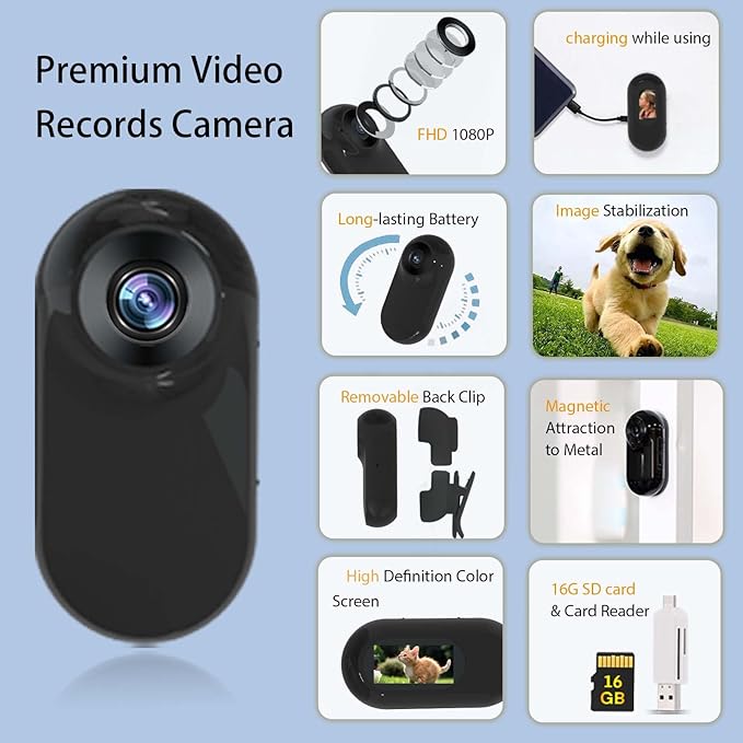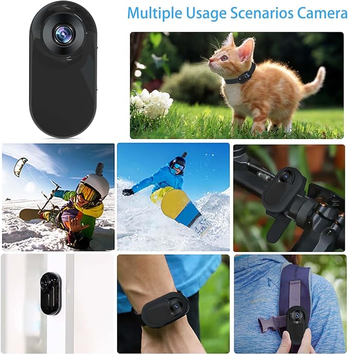 - Multiple Usage Scenarios Cat Collar Camera: The camera collar with a clip you can attach the mini cat camera to the cat collar as a cat camera collar or on your backpack as sports recording. You can use it on your wrist to track the movements to take notes at any time. The built-in magnet allows you to attach to any place with iron for monitoring. It can also be used as a car camera,dog collar camera, home security camera, nanny cam, action camera, and so on.