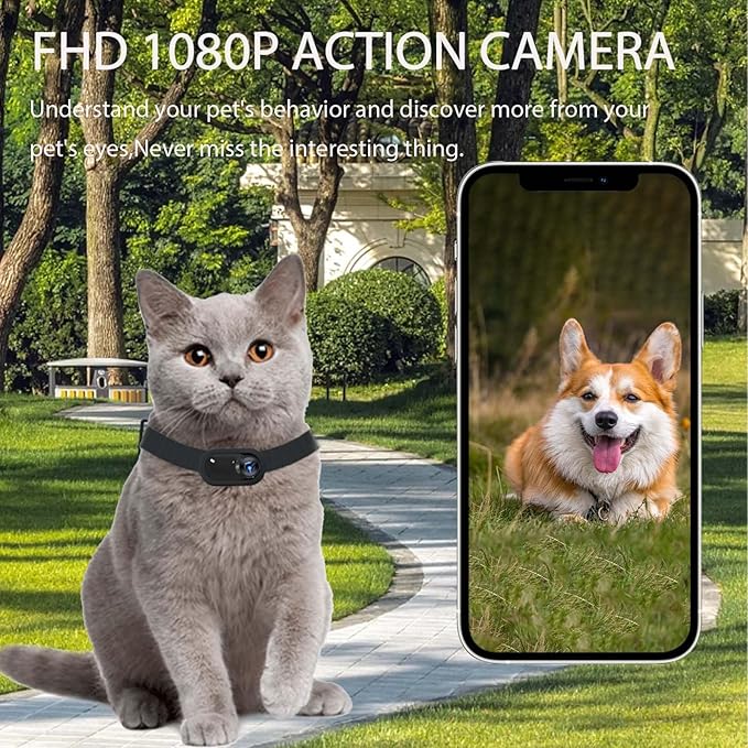 - Cat Camera Collar Super HD & Stunning Vision: HD 1080P cat camera collar provides clear wide angle lens and equipped with 6 layers of optical glass lens, which can intelligently correct the screen and wide angle video images will be set automatically without adjustment. Pet camera collar understand your pet's behavior and captures every detail clearly. The cat collar camera allows you discover more from your pet's eyes!