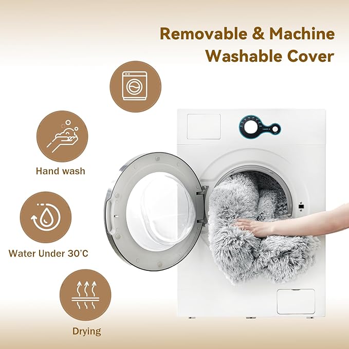 - The surface of the dog bed is made of Soft and comfortable long plush, which can provide a soft, warm and comfortable feeling for the dog. The back is designed with anti-slip design and can be placed on carpets, trunk, dog cages, outdoors and in different scenarios