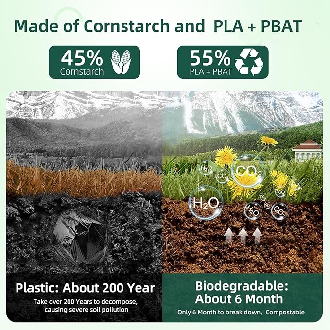 - 100% Home Compostable Cat Poop Bags: KropBom unscented poop bags for cat are sourced and carefully manufactured from Cornstarch, PBAT and PLA(compost material). Bags will break down into water, CO2 and biomass in about six months after package being opened. This style poop bags are TÜV AUSTRIA Home Compost Certified to be of ASTM D6400, EN 13432 and NF T51-800 standards! All you need is to put the used pet poop bags into your backyard compost bin