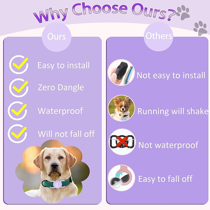 - 【Waterproof Design】The 360°coverage design can completely wrap around the airtag, with strong waterproof function, preventing damage to the airtag when pets splash water, and will not block the airtag signal. This can provide maximum protection for dogs who like to swim.