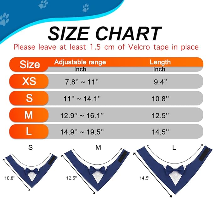 - About Size: This dog wedding tuxedo has three sizes:XS, S, M, L, suitable for most dog and cat weddings, birthdays, parties. Please measure your pet's neck circumference accurately before purchasing to ensure the size you choose is the correct size