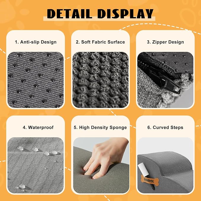 - Pet-Friendly Design: Our pet stairs are not only functional but also pet-safe. Covered in a durable linen-like fabric with a unique corn kernel texture, these stairs are not only scratch-resistant but also offer a cozy surface for your furry pals to step on. Say goodbye to scratched furniture and discomfort