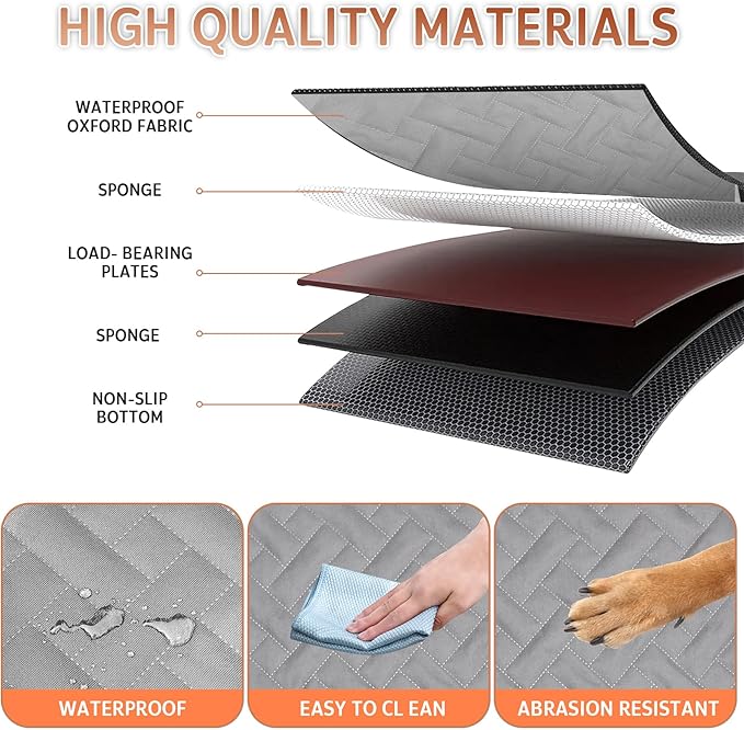 - 【Upgraded 6 Layer Design】The dog seat cover is made of 4 layers of fabric, PP cotton filler and three load-bearing hard panels, waterproof and scratch-resistant , protecting your seat from scratches, dirt and pet drool. The high-density fiberboard at the bottom is very strong and durable,it can bear up to 250 pounds of pet weight,suitable for large dogs or multiple dogs