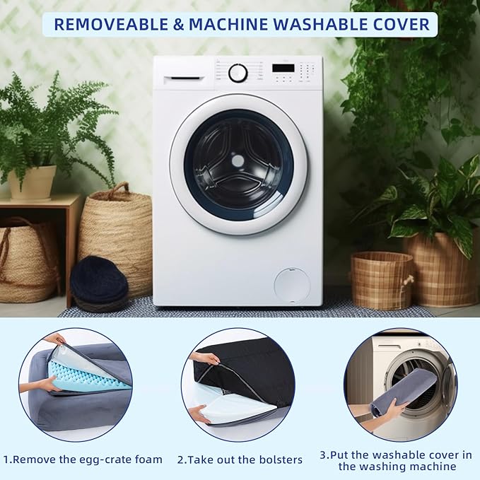 - 🐶CONVENIENT REMOVABLE COVER: Our beds come with a removable zippered cover, making it effortless to remove and machine wash. The cover is constructed from durable and scratch-resistant fabric, ensuring longevity even with active or mischievous dogs. Wash the cover on a delicate cycle to enjoy longer!