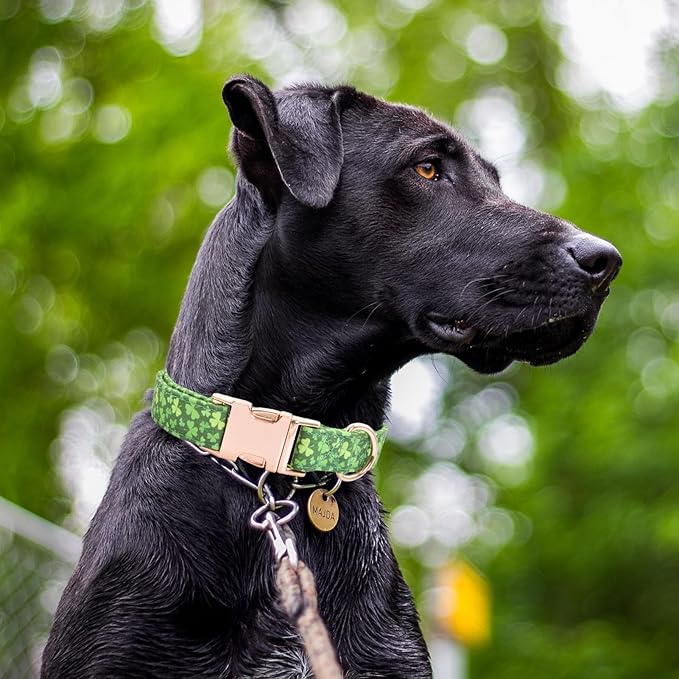 Cotton Dog Collar Metal Buckle Daisy Summer clover2, L(15-23in))