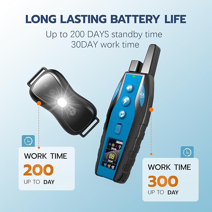 - Anti-lost Light Design: There are 2 light modes on the receiver, pure white light is convenient for lighting and looking for hiding dogs at night; The flashing light can attract moving vehicles and pedestrians to remind them to pay attention to avoiding dogs in time, so as to protect dogs.