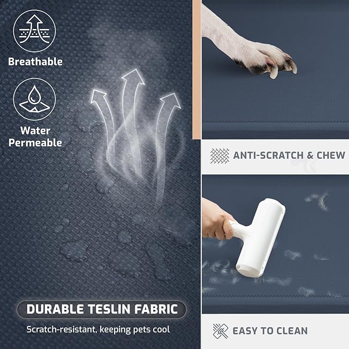 - COOL AND BREATHABLE TESLIN FABRIC: The pet bed is crafted with a cool mesh fabric that helps regulate your pet's body temperature in hot weather. It is easy to clean, simply wipe it clean with water and let it air dry. Additionally, you can also use a damp cloth to wipe it clean.