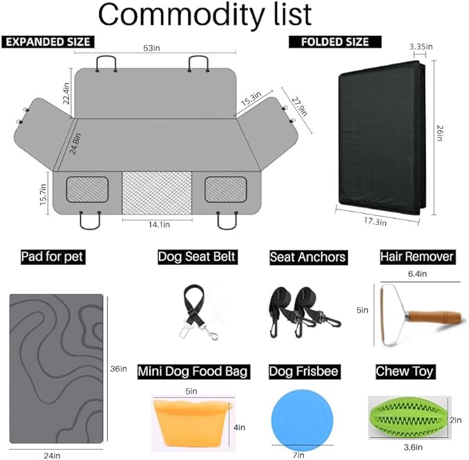- 【Roomy & Safe】The encircled design with 24 inches of bottom space and board support effectively protects your car while providing ample room for your dog to move.Dog seat belt and 2 seat anchors can keep your dog safe