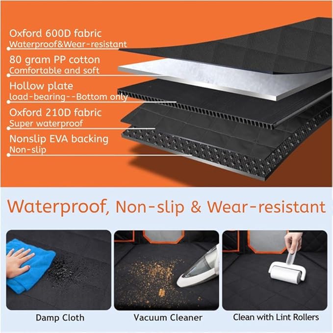 - 【Waterproof, Non-slip, & Wear-resistant】Crafted with 6 layers of top-notch fabrics. Add a non-slip absorbent diatom mud pet mat. It's fully waterproof, wear-resistant, scratch-resistant, and non-slip, with no pinholes or leaks. Shields your car seats and doors from scratches, dirt, muddy paws, and dog hair