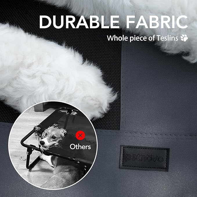 - Relaxed, Hammock-Like Comfort: Rather than a tightly stretched mesh surface, the Textilene fabric is affixed to the frame using hook-and-loop fasteners. This creates a more relaxed, hammock-like feel that contours to your pet's body, offering superior comfort compared to rigid mesh beds.