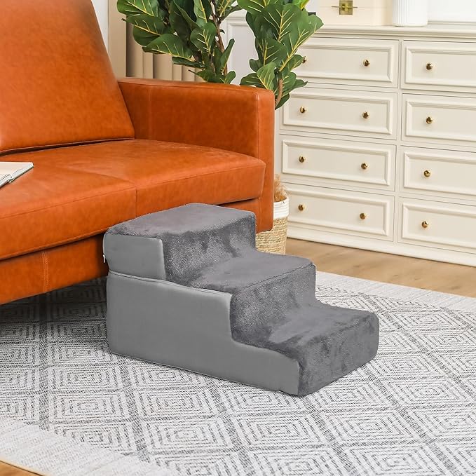 - PET-FRIENDLY DESIGN: The 2-step Dog Stairs stands at a height of 9'', The 3-step Dog Stairs stands at a height of 13.6''. Compatible with most high beds, couch and sofa.The dog ramps can be easily folded into a soft dog bed when your pets need to rest