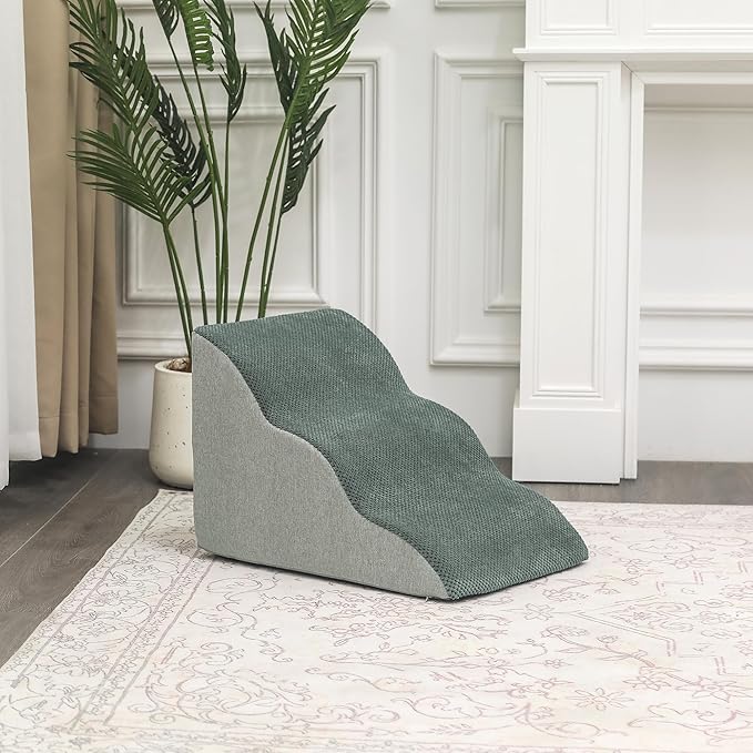 • DOG STAIRS FOR YOUR PET:Joveco foam dog stairs are made of high-density foam, high resilience, not easy to deform. It's suitable for small and medium dogs. With the help of these dog steps, your pet can comfortably and safely climb up and down to beds, sofas, chairs, balconies, and anywhere else they want to go.