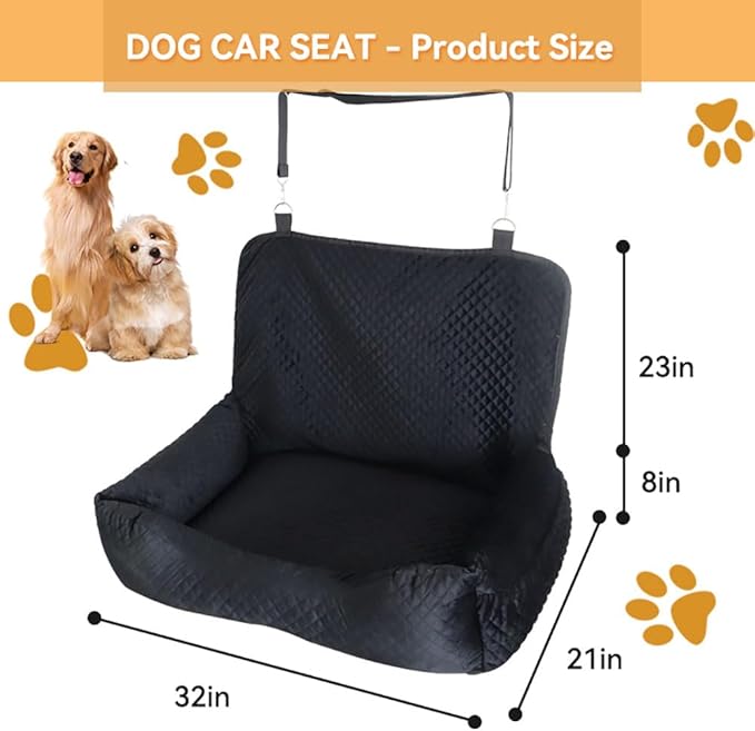 - Large Dog Seats Size: 32” (L) X 21” (W) X 8” (H). This two dog bed for car can accommodate large/medium dogs under 55 lbs or two small pets under 20 lbs, Suitable for installation in the back seat of all types of cars, and can also be installed in the trunk of the car.