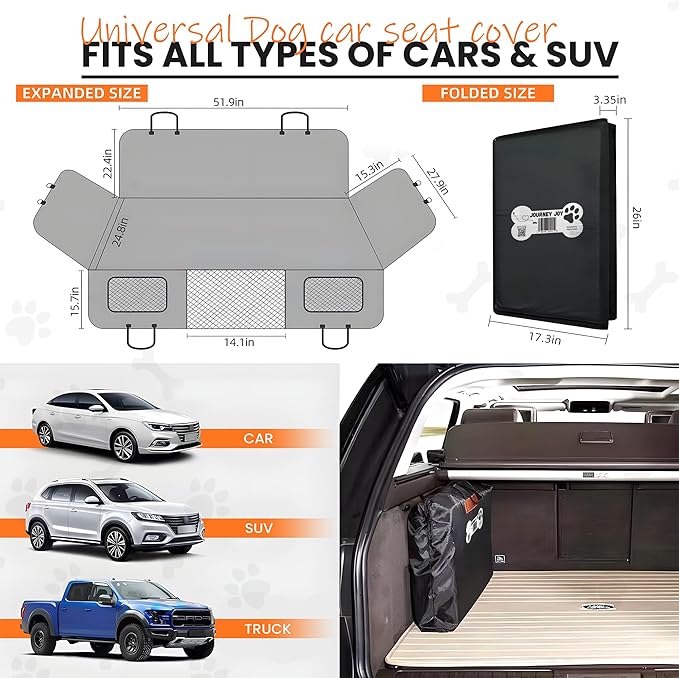 - EASY TO INSTALL: Say goodbye to complicated installations. Our backseat cover for dogs in car features a simple buckle and strap system, ensuring a universal fit for cars, SUVs, and trucks, supporting up to 330 lbs. Get your dog’s travel space ready in minutes and enjoy a hassle-free journey every time. Whether you're using it as a car seat dog cover, dog seat cover for back seat, or a car seat dog cover for back seat, installation is a breeze. It also functions as a car sling for dogs.