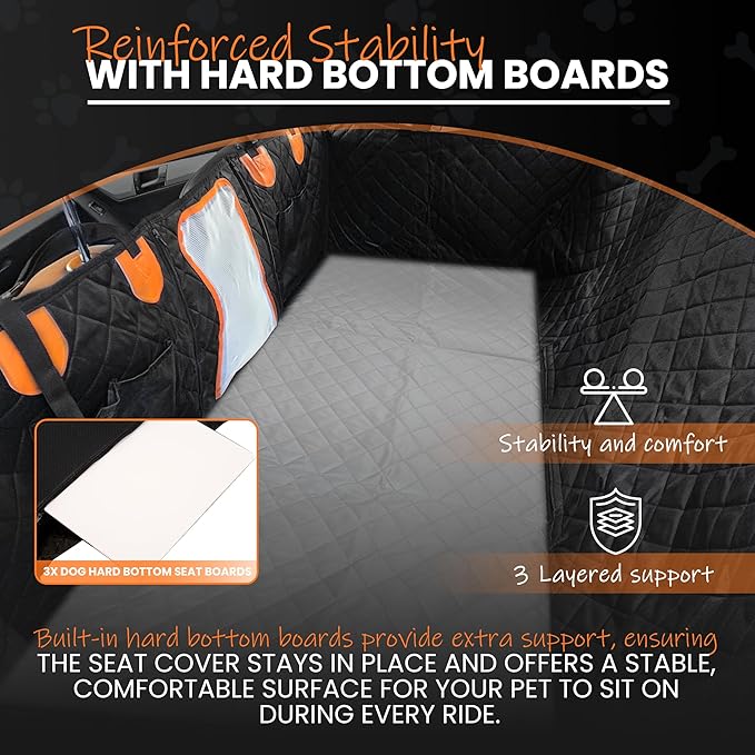 - HARD BOTTOM CAR SEAT COVER FOR DOGS: Transform your car's back seat into a stable dog backseat hammock and comfortable bed for your dog, ensuring a smooth ride. The non-slip surface keeps your pet secure, our waterproof dog car seat cover protects against fur, spills, and scratches. Easy to clean, our dog car seat cover for back seat is great for long trips, offering both safety and comfort for your furry friend.