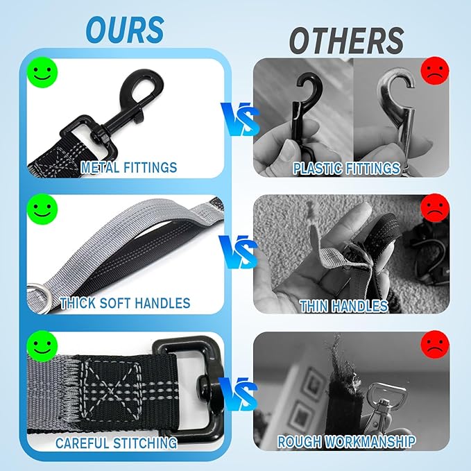 - 【Double Padded Handles】Two thickened soft handles provide greater control when needed, giving you better control of your dog while allowing you to guide your dog more easily. Feature shock-absorbers to help provide a bit of “give” in the leash. This can help reduce the amount of tugging both you and your dog will experience as you cruise down the road.