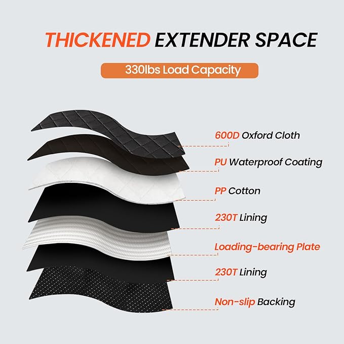 - 【Increased Back Seat Activity Space】 Back seat extender for dogs expands to 53 inches in width and 24.8 inches in depth, enabling complete coverage of the back seat area. Prevent your furry friend from sliding into the footwell during sudden stops
