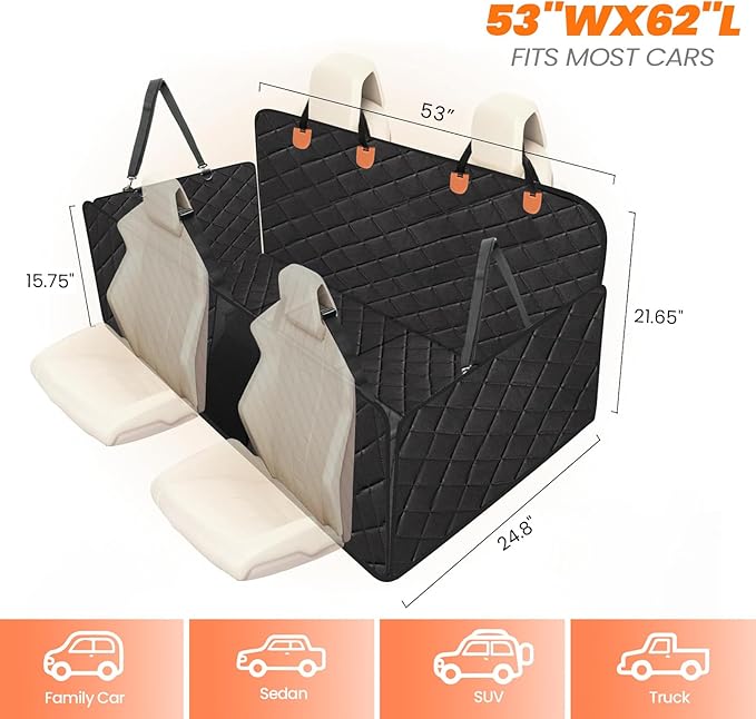 - 【Sturdy Material】Made of 600D Oxford cloth, PU waterproof coating and PP cotton, it provides durability and protection for dogs. Our dog car seat cover for back seat with non-slip backing on the bottom provide a better grip for your pet
