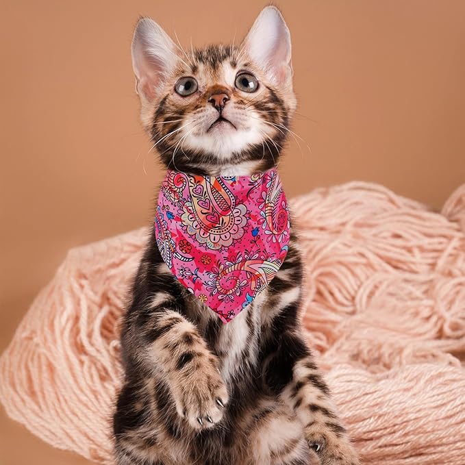 - These dog bandanas are designed with paisley, cute and fashionable, That will never go out of style,which is the ideal way to dress up your pet.7pcs dog bandanas contain 7 beautiful colors&patterns, which are suit for girl boy dogs, cats and other cute furry pets.