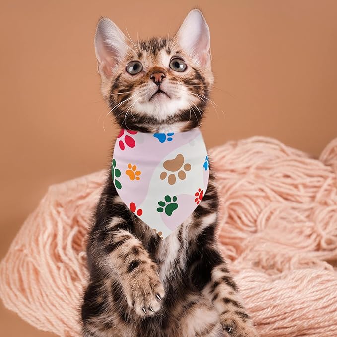 - These dog bandanas are designed with paw print, cute and fashionable, That will never go out of style,which is the ideal way to dress up your pet.7pcs dog bandanas contain 7 beautiful colors&patterns, which are suit for girl boy dogs, cats and other cute furry pets.