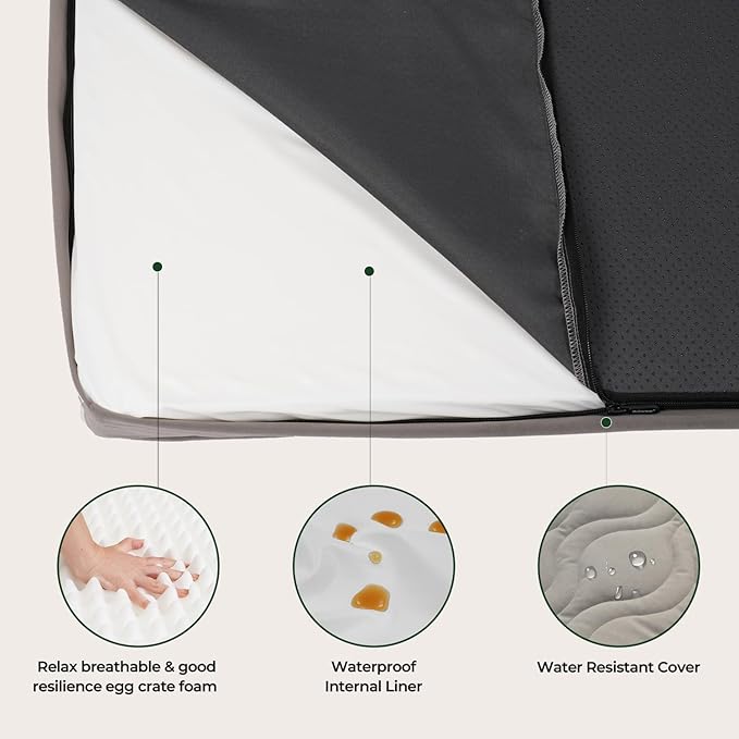 - 【Water Resistant Design】: Our dog bed features a water resistant surface and waterproof lining, effectively preventing liquid leakage and protecting the internal foam. The pet dog pad is also equipped with L-shaped zippers with a removeable and washable design. This ensures a clean and hygienic sleeping environment for your pet.