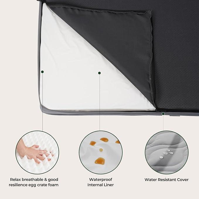 - Special Feature : Thick Bating Quilting Top, Water Resistant Cover and Waterproof Lining, Orthopedic Support, Easy to Clean, Egg-Crate Foam Thick Bating Quilting Top, Water Resistant Cover and Waterproof Lining, Orthopedic Support, Easy to Clean, Egg-Crate Foam