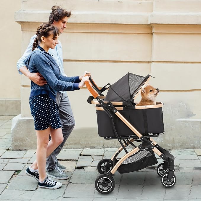 - 【FRESH AIR AND GREAT VIEWS AWAIT】 The removable pet basket comes with a breathable mesh cover to keep out direct sunlight without blocking your pet's view.The 4 in 1 dog stroller not only serves as transportation for pets but also fulfills various other purposes,like a dog-walking stroller,a pet travel crate;or a pet carrier;catering to your needs in different situations;It is also the best gift choice for your cats or dogs