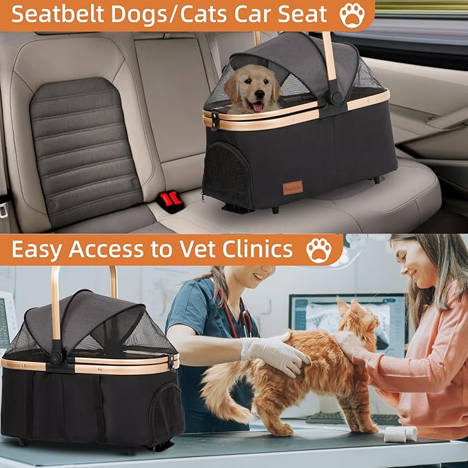 - 【MAKE PET TRAVEL A BREEZE 】with our Pet Gear Stroller With just a few simple adjustments; you can switch between a comfortable car seat;a handy pet gear carrier & a smooth-rolling doggie stroller; it's the perfect kitty stroller for all pet lovers