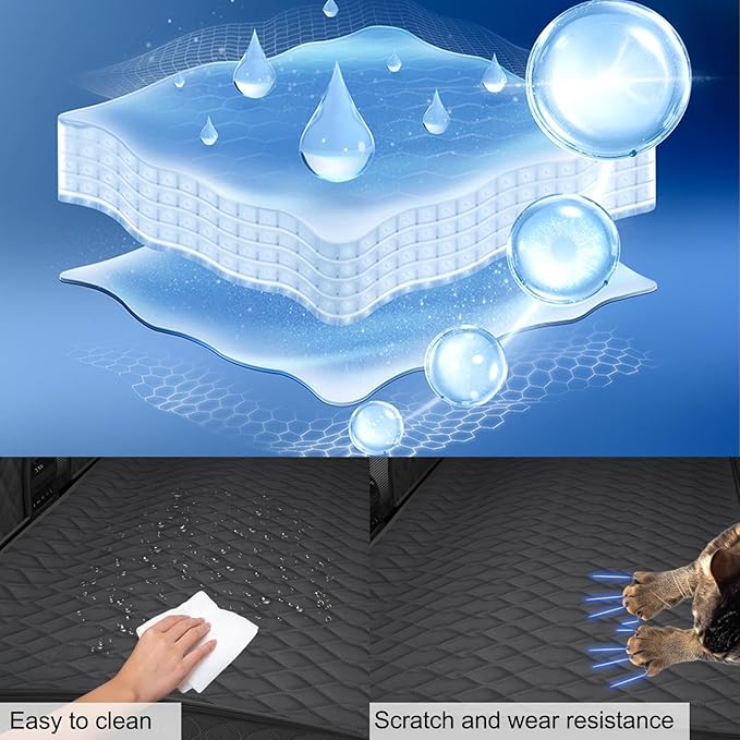 - Zipper and pocket design: With side flaps zip and storage pocket; place the dog supplies; Side flaps design; protect the side door plane from scratched and damage; Hammock design; prevent the dog from falling down in the brake and turn