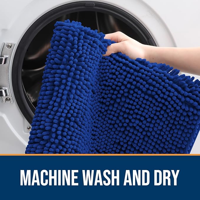 • [LOW PROFILE AND EASY CARE] OLANLY's Chenille Dog Door Mat boasts a slim 1-inch profile, offering a sleek and streamlined appearance. The thoughtful design ensures your doors won't get stuck, and the mat stays securely in place. Cleaning is a breeze – simply shake off any dirt or debris, or toss it in the washing machine for a deeper clean. It dries quickly, so you can be sure it's ready to use again in no time.