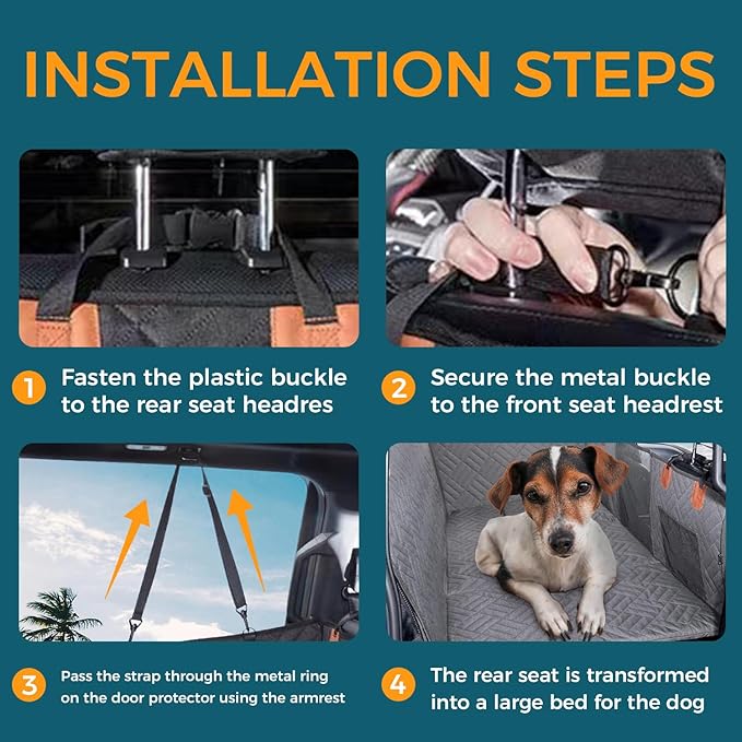 - EASY INSTALLATION: Our car seat cover for back seat does not require complicated installation, you just need to roll out the seat cushion to cover your back, and wrap the elastic strap around the headrest and attach it under the seat - no tools required.