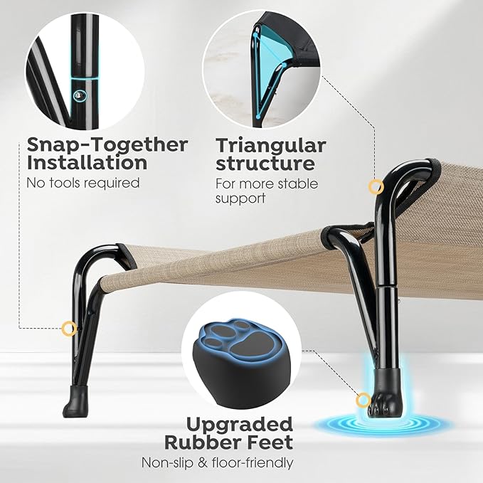 - Support and Anti-Slip: The unique V-shaped support foot design can reduce the possibility of dog cot collapse and shaking. The upgraded dog paw-shaped anti-slip feet have a stronger grip, ensuring that your pet will not slide when getting on and off the pet bed.