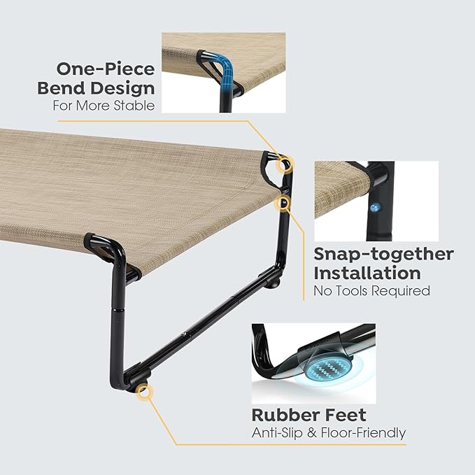 - Extra Large Elevated Dog Bed - Composed of washable dog pee pads and powder-coated steel and textilene mesh. 47.2"L x 32.3"W x 10.6" H (120x82x27 cm), fits up to 130 lbs(59kg). Upgraded rubber anti-skid feet can grip the floor better.