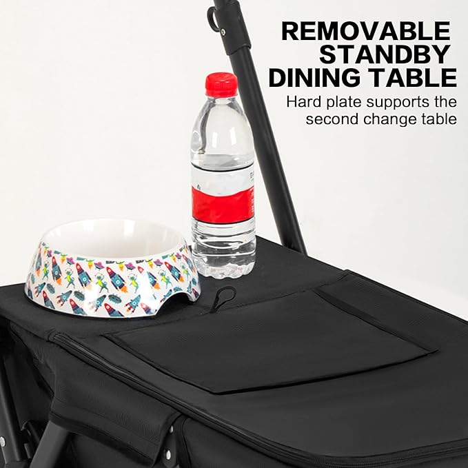 - 3 different ways to carry - Handle Pet Carrier Bag / Pet Carrier Backpack / Travel Stroller,Our carrier seamlessly converts into a backpack, wheeled carrier, car seat, and pet bed, so you can bring your dog or cat just about anywhere. 3 Pockets provide room for store. Pockets on both sides, one side is bottle pocket and the Dog Poop Bag Holder , other side is zipper pocket for you put any dog snacks, toys and other essential supplies. One zipper bag is inside in backpakck.