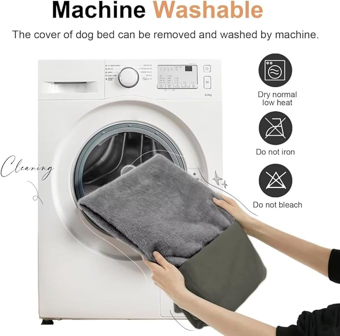 - 【Care Instruction】Our large dog beds boasts a removable bed cover, there are zippers on the top and bottom which make it easier to assemble or disassemble for quick cleaning and easy care; Before putting into washing machine, please make sure the foam and bolster fillings are removed, and the zippers are closed