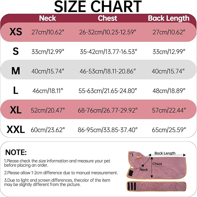 - SIZING FOR DOGS AND CATS: Multiple sizes are available for all types of pets, including kittens; Please measure the size of your pet before purchase, and then choose the right size according to the size chart and avoid being too big or small; If you have any questions about dog towel robe for drying dogs, please feel free to contact us, we will provide you with suitable solutions as soon as possible