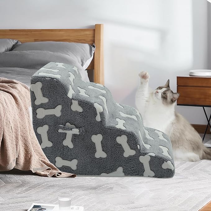 - [ Double Sided Anti Slip Design ] --- The dog steps cover is made of corduroy, surface bone printing design, is more frictional than other covers, pets will not slip on the stairs. The anti-skid rubber bottom to keep the pet stairs from sliding.