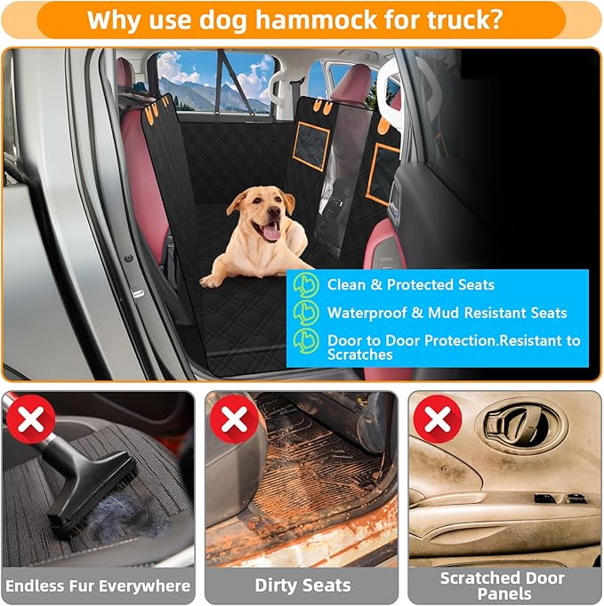 - 【ULTIMATE PROTECTION FOR YOUR BACKSEAT】: Shield your truck's interior with our 100% waterproof backseat cover for dogs. Engineered to repel water and resist scratches, it offers the ultimate defense against dirt, hair, and scratches. Keep your truck looking brand new, no matter where your adventures take you.