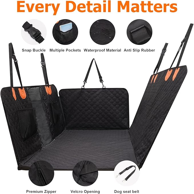 - Waterproof, non-slip, and wear-resistant: The dog car seat cover for the back seat is waterproof and easy to clean after getting dirty; the dog hammock for a car on both sides of the non-slip design, The Noninflatable car bed mattress is not easy to move